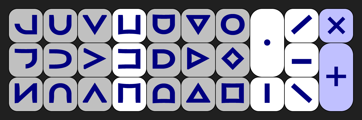 All Musa keyboards share the same layout, which looks like this: